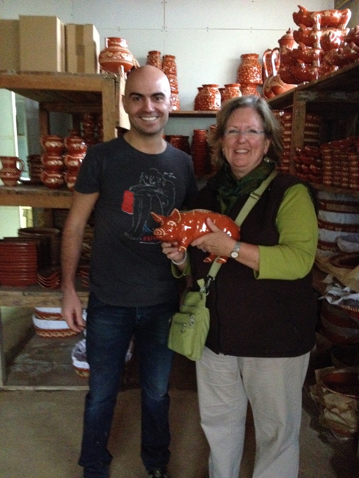 We finally settled on some lovely plates, wine pitchers and a pig. Yes, a pig. We may have to throw some clothing out to make room in our luggage for everything.