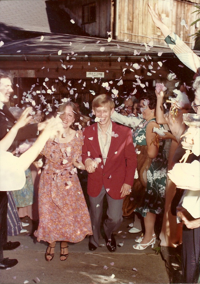 Here’s me and Brenda leaving our wedding reception. Love the polyester sport coat. 1977 seems like a very long time ago.