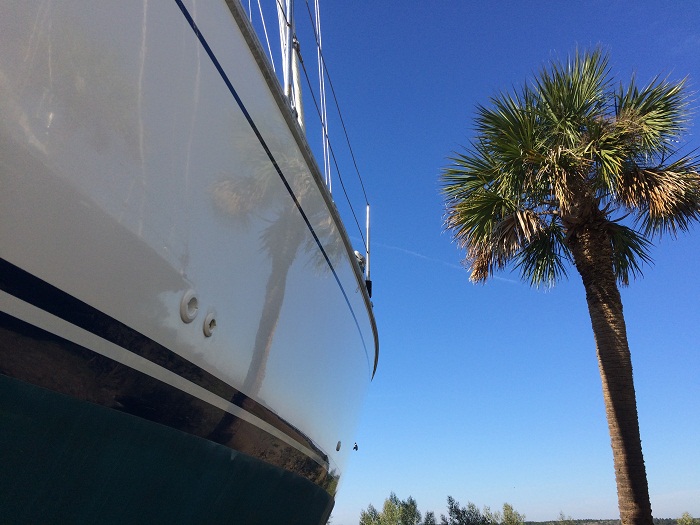 While Pandora was on the hard I had the hull buffed and waxed.  They did a great job.  How about this shine?  Oh yeah, and Terri, the boatyard office manager, will even take you to the Jacksonville airport if you need to drop a car or get picked up from a flight.