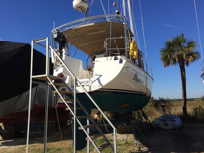 The yard where Pandora has been since early October is much like other yards, with some really nice boats as well as some that look like they haven’t seen the water in years.  Unlike northern yards, most of the boats in this yard are stored for the summer and then launched in the fall and winter.  In fact, most of them are from northern states and it seems that there were a good number from Canada.