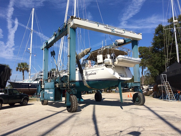 It’s been a whirlwind with visits to survey the boat we hope to purchase in Miami and a frantic few days of provisioning to get Pandora in the water.  How is it that groceries and “stuff” cost so much?  We had planned to launch her today but the weather report gave us a start with rain in the forecast for today and Monday.  Fortunately, Rocky at St Mary’s Boat Services, was very accommodating and didn’t seem at all concerned when we changed the launch date for the third time in so many days.