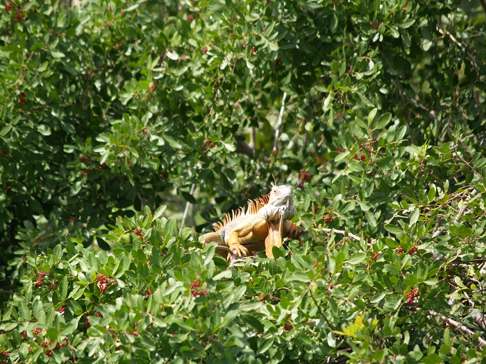Above him, in a tree overlooking the water was one of the dominant males looking like he owned the place and trying to look his “lizard best”. “I see you. You in that rubber boat, yeah you!”