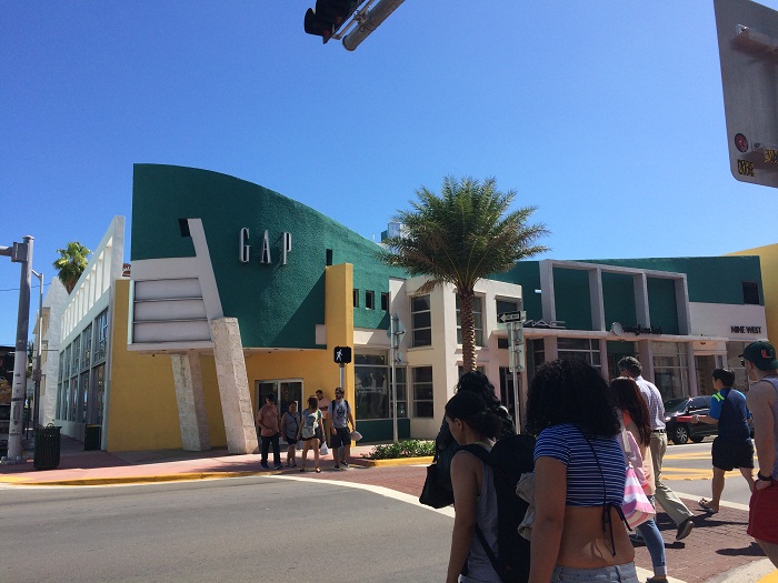 Our goal yesterday was to explore the South Beach historic district with it’s distinctive Art Deco architecture. Even the local Gap store has to comply. You won’t see another store from this chain housed in this style elsewhere.