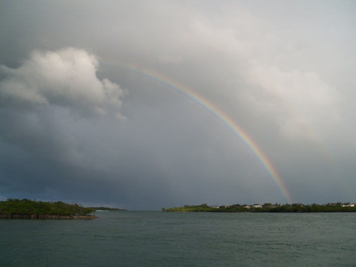 And, after one of the more “exciting” squalls, we were rewarded by a beautiful rainbow. The photo doesn’t do it justice.