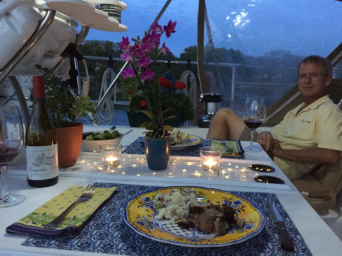 Fortunately, as stressful as Ft Pierce was, last night’s dinner was anything but that. Looking pretty mellow and ready for a steak dinner with fresh potato salad.