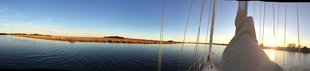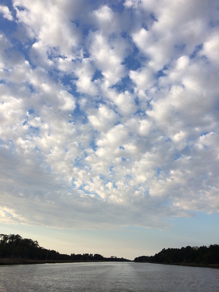 For the two days we spent motoring here from south of Charleston, we have “enjoyed” some really shallow spots. Because of the high tides, around 7’, along the 70nm run, you can use the tides to get over the shallow spots but that means making the run on a rising tide. And that meant that we had to time our departures each day to coincide with rising tides which meant that sometimes we had to wait till mid morning to depart which somewhat restricted out travel time and distance before the sun and tide went down again. However, we made it and here we are.