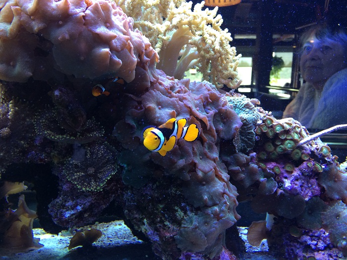 We also went out for lunch at a riverfront cafe. There was a spectacular and huge, salt water aquarium. It was clearly a very well cared for tank. Notice the soft corals. I expect that they aren’t feeding them smoked pork necks.
