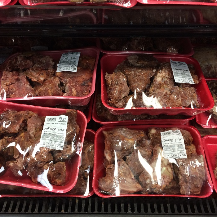 There was also piles of “meat by-product” looking stuff labeled as “sousa” and “blood pudding” in the meat section. They were thick slices of what looked like a soft and lumpy bologona. I expect that you DO NOT WANT TO KNOW what’s in it. However, it’s not expensive.