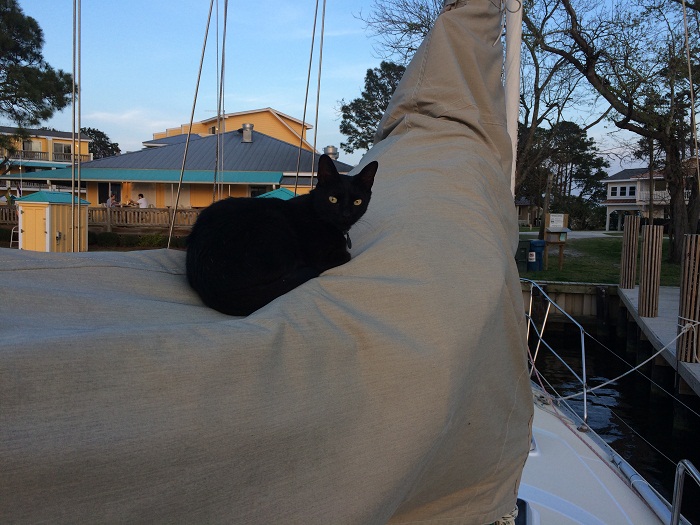 It’s Thursday morning and Pandora is secure on one of the FREE public docks here in Oriental.  We arrived yesterday after a short 35nm run from the bight of Cape Lookout.