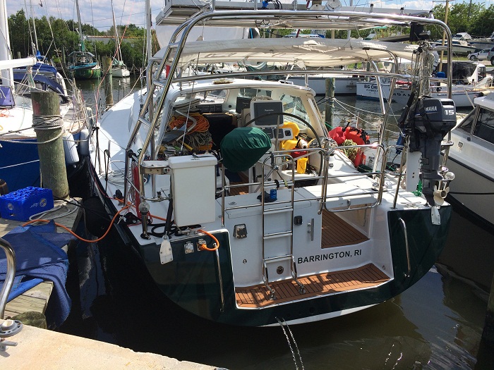I was moving over to another yard, a “working” yard nearby with “working” being code for pretty rough.  However, Joe the welder, perhaps the owner, not sure, at the yard does very good work and seems reasonably priced.  The plan is to have him put on a new set of custom stainless davits so I can pull the dink up and also have a spot to mount some additional solar.  It was a very tight squeeze to get the boat into the slip stern in.  However, Joe and some others met me and helped guide me in.