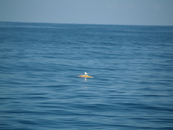 And, I can’t believe that I forgot about our turtle encounter. We passed quite a few while we were offshore. This one had a seabird taking a rest on it’s back.