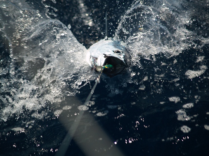 I mentioned in my last post that we caught a tuna. Here’s a photo of it as it came up to be landed. Looks pretty big? Not really but a nice “action” shot, never the less.