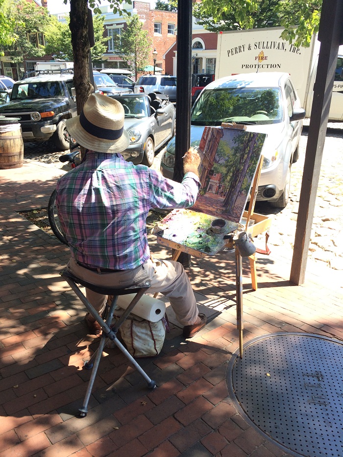 We walked around town PLENTY on this visit. At the end of the day my “dogs were aching”. It was fun to see the sights. I enjoyed watching this gentleman painting on Main Street.