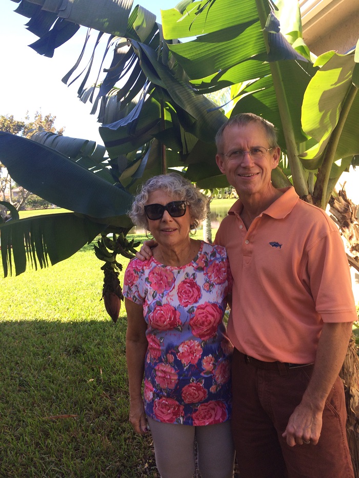 As I reminisce, I should mention that we had a lovely visit with our long-time, notice that I didn’t say “old”, friends Linda and Richard. Linda worked with me for perhaps a decade back in one of my “previous lives” and we try to visit her when we are passing through West Palm Beach, where they live. Linda is the keeper of the last remaining stand of “Bob the banana”, offspring of a plant that Brenda and I grew from a shoot that we purchased back in the 70s while we were dating in high school. We kept it alive for many years, in our home and later in a greenhouse that we kept for over 20 years. When we moved away from NJ, four years ago, we tossed the last of our “Bob”. However, he lives on with Linda and Richard as they planted a shoot that I gave to Linda when they moved to Florida almost ten years ago. Here’s a shot of me, Linda and “Bob”. He’s doing well, I would say and pays his way by producing hundreds of bananas a year. Don’t we all look so cute together? “Bob loves it there!” Me too.