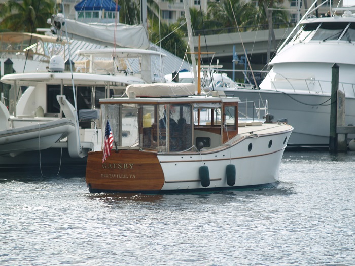 All boats in Ft Lauderdale aren’t HUGE. This lovely cruiser turned my head. Although not quite quickly enough to get a close up shot of her. I love the raised bow.