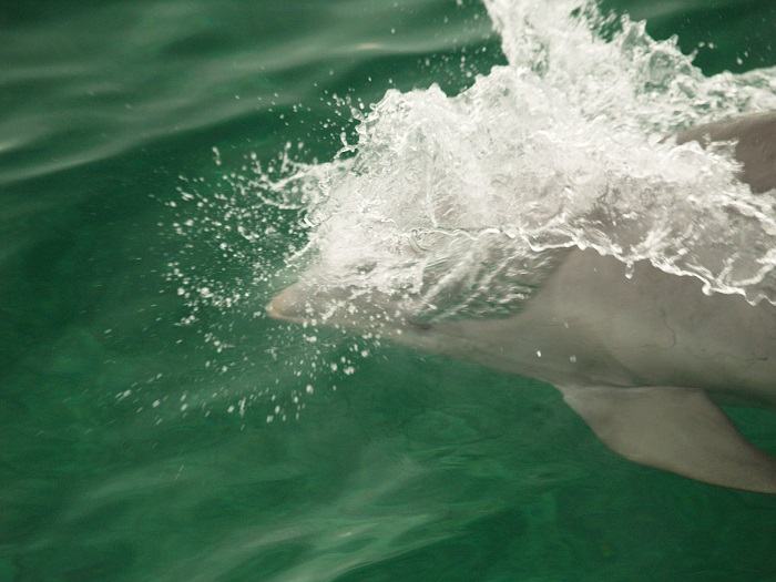 As I said, I have been here for a week and the weather has been just about everything we could imagine during that time, short of a hurricane. It’s been fabulously sunny, torrential rain, overcast, dead calm and windy. Yesterday Brenda and I headed out to empty the holding tanks (you don’t poop in your nest). We left the harbor and headed over the banks for a few miles. Along the way, a pod of dolphins visited. It was just great. They cavorted on our bow pressure wave for a bit and then disappeared as quickly as they came. I find them endlessly entertaining.
