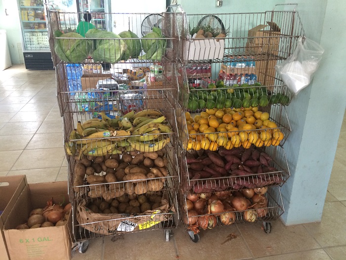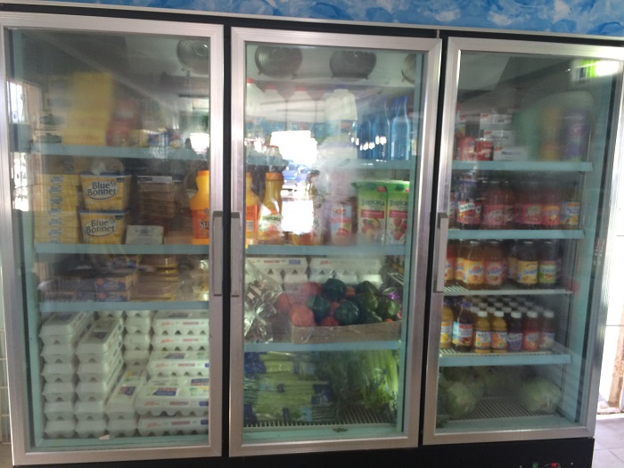 This is the local market, liquor store and bar all wrapped up into one.  Not exactly a Walmart Superstore.The selection of produce.  Let’s just say it’s somewhat limited.  This is the entire produce section in the market with the exception of a few items kept in the fridge, such as lettuce.  I think that they had four heads of romaine, actually. How about the refrigerated section?  Lot’s of eggs, butter and oddly, Snapple.
