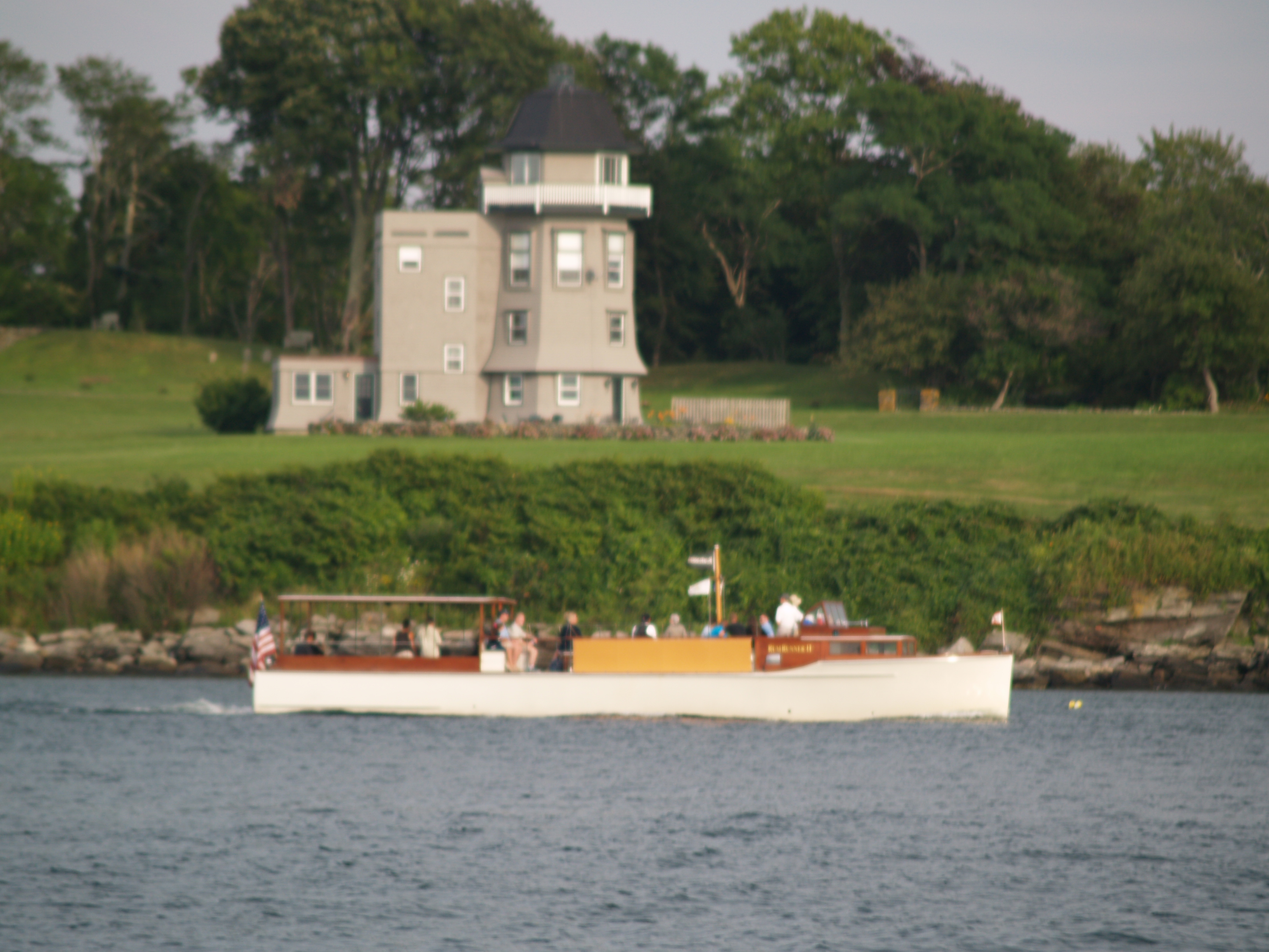 Not everyone has a mega-yacht though. Some just have a classic that costs as much as a minor-mega-yacht to maintain. This is a beauty and all the better looking cruising by a lovely estate on the bay.