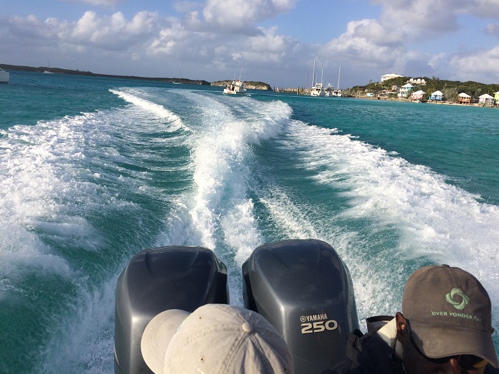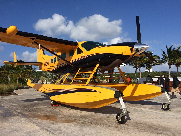 I took a run to drop off some folks last night.  What a ride.  And I thought that 9kts on Pandora was fast.   Can you say white knuckle?When we stopped at the dock everyone scrambled off in an instant.  In spite of the bumpy ride and 40kts boat speed, everyone (but me) just casually sat on the gunnels, checking their e-mail and looking at Facebook.   Dressed in only shorts and a t-shirt, I immediately realized that I had made a mistake when everyone else showed up in hoodies and wind breakers.   It was pretty brisk with the 40+ kt apparent winds as we blasted along.  I have noticed that when Bahamians get behind the wheel of a powerboat, the only speed that they know is “full out”.    In this case, all 500 horses screaming.I guess it’s like just about like any other commute.   However, for the “big kids” this is the preferred mode of transportation.   I can’t say that I blame them.  What a ride.  And, there are two of them available at all times.   It’s sort of like Enterprise Car rental for the .01%.  “We pick you up.”  And, they do, and in style. I understand that the plane was painted yellow by the previous owner because he flew all over South America and he wanted to have a plane that would show up as much as possible if he ended up ditching in the jungle.   Good thinking.  It looks just awesome.  My dad would have “gone bonkers” (as he used to say) over this one.