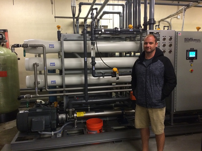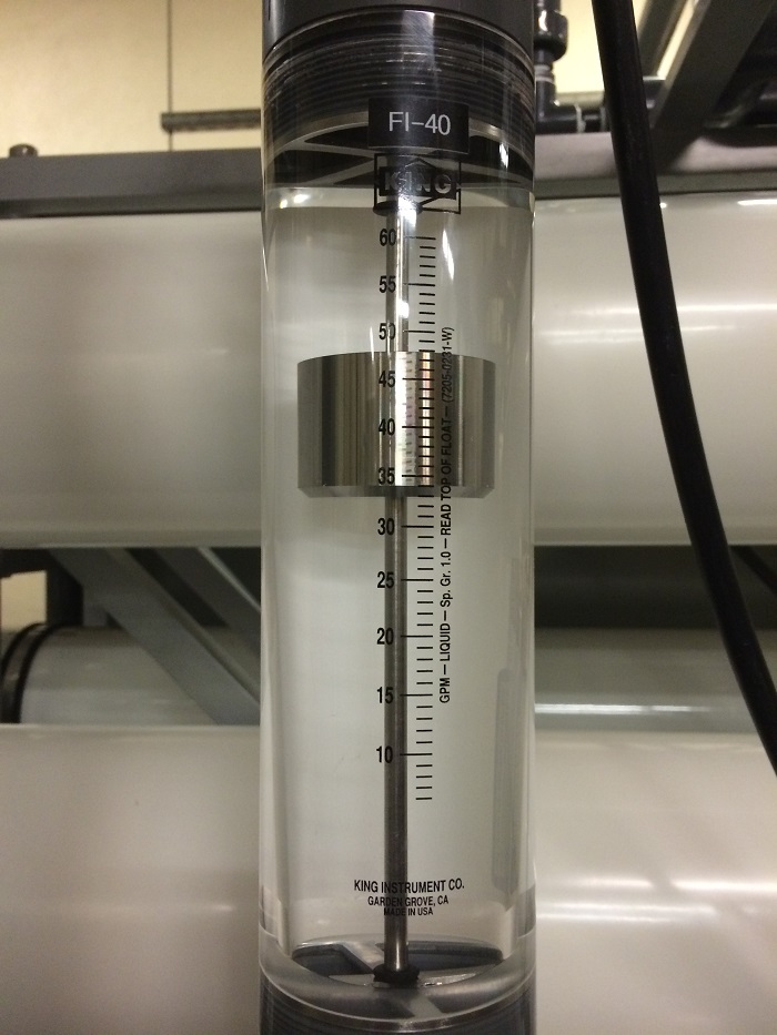 Last night we were visited aboard Pandora for dinner by Ethan, Jamie and their new baby Levi as well as Jamie’s mother Sherry .   Levi was so good. So was everyone else but you know how babies can be when grownups keep them out too late.  Brenda doing her thing practicing at being a grandmother when Levi finally decided to cry a little.  I expect that he saved his full wail for when his parents finally decided to go to bed.   Better them than me.    Been there, done that.  Such a good baby.  Love the camo pants.  Ethan gave me a tour of the island today.  I was particularly interested in the new RO system that they just installed last week.  It’s just huge. This is the flow meter showing that it is producing 48 gallons per minute.  Amazing. That means that the capacity of the system is 70,000 gallons per 24 hours.   No need to ration water here.  No kidding.   The system aboard Pandora only generates 6 gallons per hour.  Actually, that’s more my speed and a lot more pocketbook friendly.
