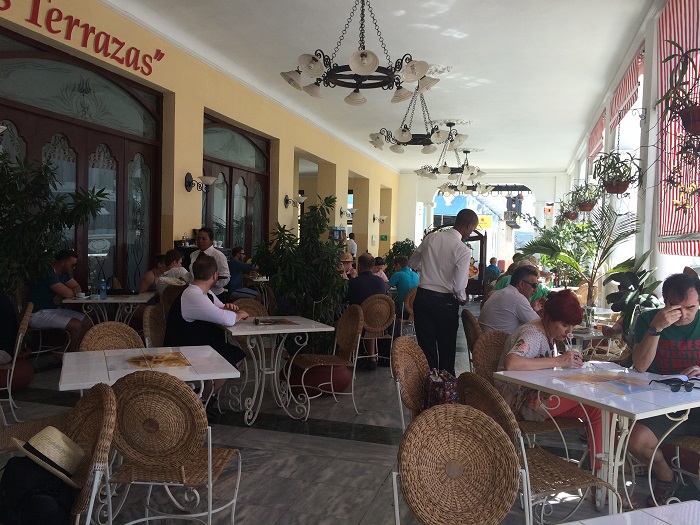 For sure, plenty will be changing in Cuba as they open up to the world. Perhaps there is no better illustration of the challenges that this country faces than the long lines of young people waiting outside of the cell phone store waiting to enter for service. And,as in the U.S. , it seems like nearly everyone is busy huddling over their phones, perhaps, like us, trying to use the horrible wifi in public squares. For sure, wifi is not great as it took me an hour yesterday and all of the time on my prepaid wificard to get just a simple post with one photo to publish. Today I am in a cafe using their computers so it´s going much better, so far…