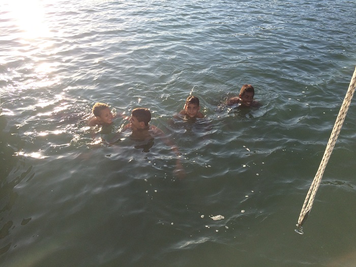 The wind became very light in the evening so Brenda and I sat up on deck to watch the local children jump into the water from a tree.