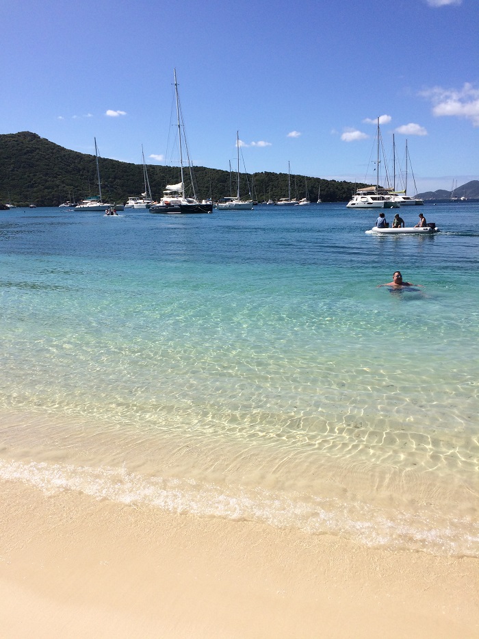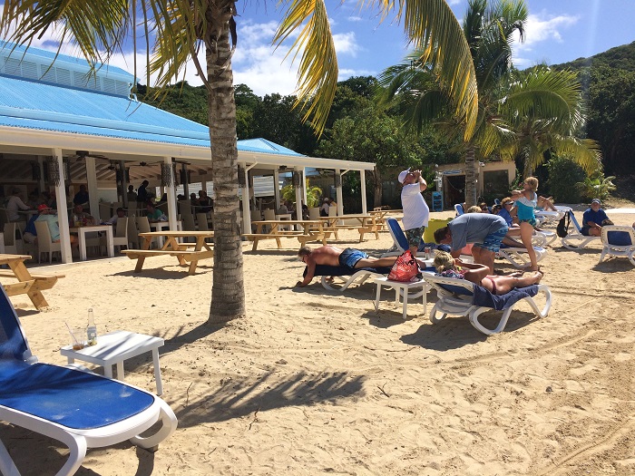 The beach bar, complete with terrific free wifi, is as nice as any Hilton resort and yet it’s only accessible by boat.  Of course, there are plenty of day trippers who come over on tour boats from the nearby USVI for lunch.  It’s a nice spot.Beautiful view pf the harbor and clear water.  I went there for the afternoon to relax, check my email and make some wifi phone calls.  An all around nice afternoon.  My crew went snorkeling nearby.