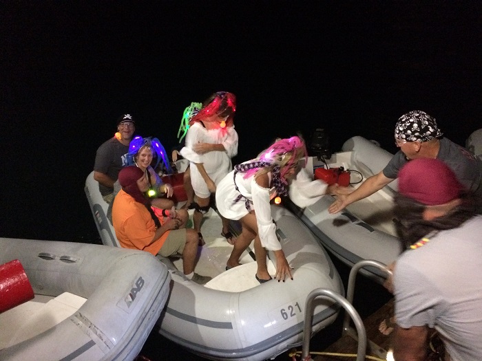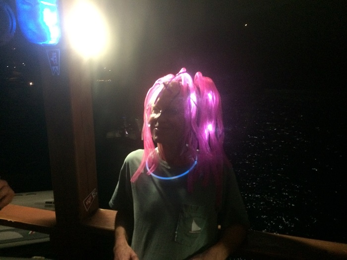 As the evening wore on, I was even lent one of those lovely flashing hairpieces.  Even when I was all dressed up and totally awesome, I was only asked to dance once and by a Brit in her late 60s.  Perhaps she thought I too was a mini Oligarch.  I did my best not to break her bubble.   I don’t know, seemed like some sort of angelic halo to me.  For sure, compared to the “dink nappers” was was a perfect angel.Norman’s Island is a must stop spot for charterers and the beach bar, well very nice and with GREAT WIFI.   I recall clearly that I had fun.  However, I have a feeling that many of Willy’s customers, while they aren’t sure what they did they were pretty sure that it was fun too.   Better them than me.