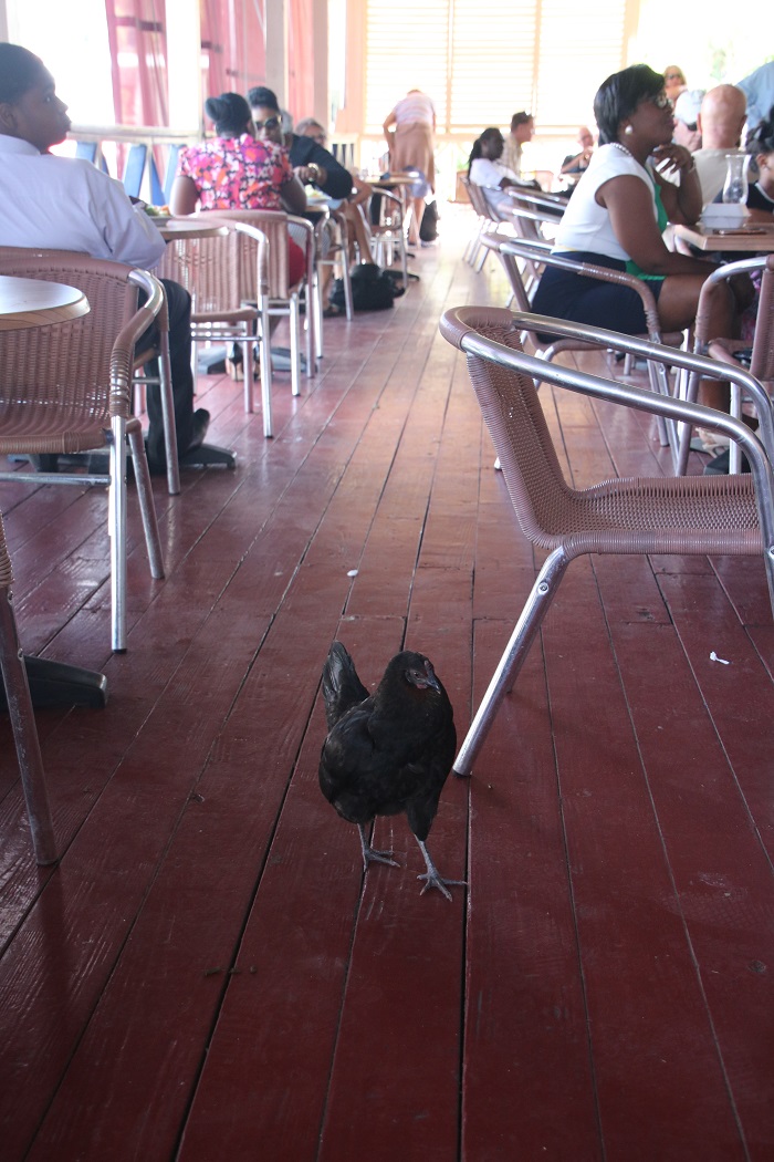 Pandora is in another marina across the way and it is very nice to be tied up on a dock for a bit. Oh yeah, and the AC is on and blasting. Nice a dry with no humidity. Me and my crew went out for lunch at the marina yesterday for burgers. They tasted great. This chicken was walking past our table in the restaurant during lunch. Can you imagine a chicken walking through a marina restaurant in the US?