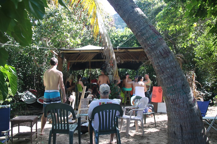 After we reached the top of the hill which felt more like a mountain, all 651’ up, with an emphasis on “up”. Then we headed down the other side to Pirates Cove, I think that’s what it was called. Liquor licenses don’t seem to apply here as an enterprising local had set up shop with a snack bar serving mixed drinks and beer was in full swing.