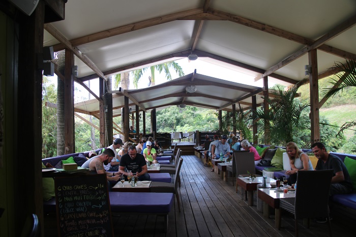 Dining in the trees, St Martin style.  Can I have another baguette?