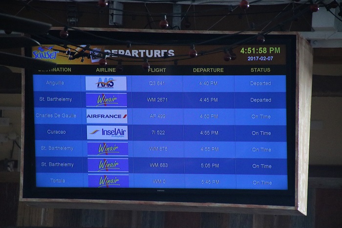 This is just how close the big jets are as their engines spool up for take off.   Note:  Objects in this photo are closer than they appear. Look at the sand blowing, along with the spectators.  “Mommy, MOMMY, I have sand in my eye!”If you think that this would be even more fun after a few drinks…  Well, you are in luck as there are bars on either side of the beach and at the very end of the runway.  There’s even a TV with the takeoff times for each flight over the bar so you can go out to the fence and grab on at just the right time.  No reason to be away from your beer for more than a few moments. Imagine something like that at Kennedy Airport in NY.  Not likely.  So much for airport security.   President Donald might have something to say about that.  You think?