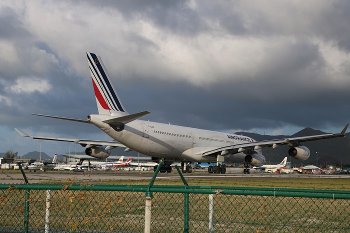 While we were eating we watched the zip liners fly by.And speaking of exciting, no visit to St Martin is complete without a stop at the end of the airport runway to watch the planes take off and land.  There is a fence and beach at the very end, and I mean close to the end of the runway where folks stand with the hope, I think,  of being blown off of their feet by the jetwash of a jumbo jet’s engines at full takeoff power.