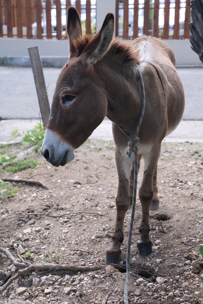 I bring my camera with me everywhere, always on the lookout for something to write about.  How about a donkey? And a very calm one that seems to be saying to say “Don’t worry, be happy.  I’m on island time Mon”.  You are probably wondering “Bob, now can you possibly know what he’s thinking?  Actually, he’s probably just waiting until you step behind him so he can give you a swift kick.”.   I don’t know how I know but I just do.  He’s a very calm donkey.  I am completely confident on that point.  The last time I put up an equine shot was in ST Martin and that was a horse walking past a bakery.  No doubt, I had a mouth full of baguette at the time.   Oh, how I do miss the food of the French islands.  Antigua food?  Ok, at best compared with the French islands.
