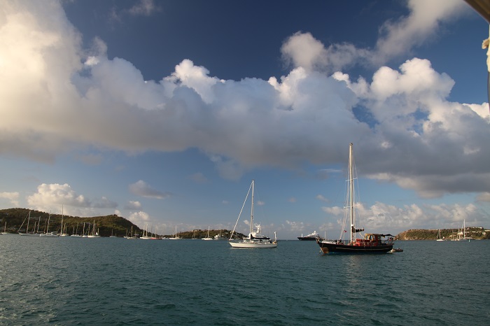 However, as is so often the case, boat repairs and more recently, weather, has conspired to keep us here.  So here we are so I thought that take a moment and share what a typical day aboard Pandora is like as we sit here.  Did I mention that we have been in Antigua for nearly three weeks?  Thought so.  It’s been a long time but it’s better than Cleveland in March for sure.