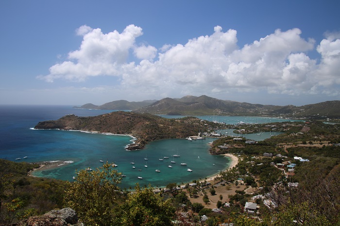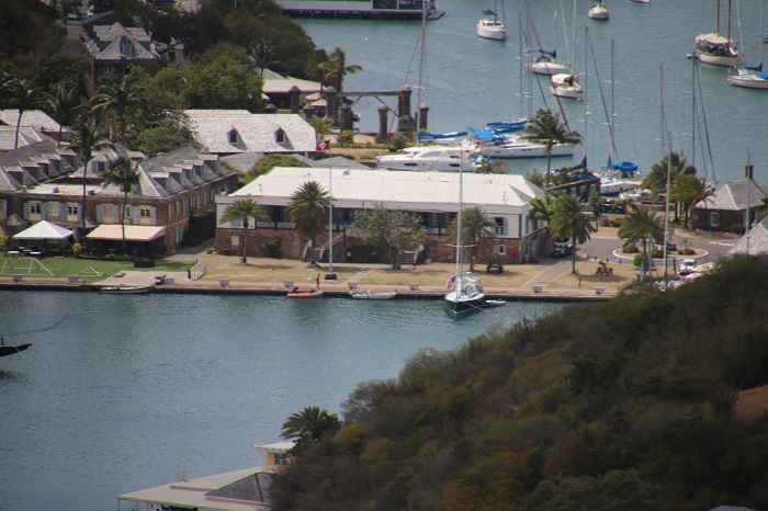We’ve taken it easy and not tried to pack too much into his short visit of less than a week but yesterday Christopher and I walked up to Shirley Heights, a historic spot way up on the top of one of the local mountains overlooking English and Falmouth Harbors. What a sight. If you look really really closely, there’s Panodra…
