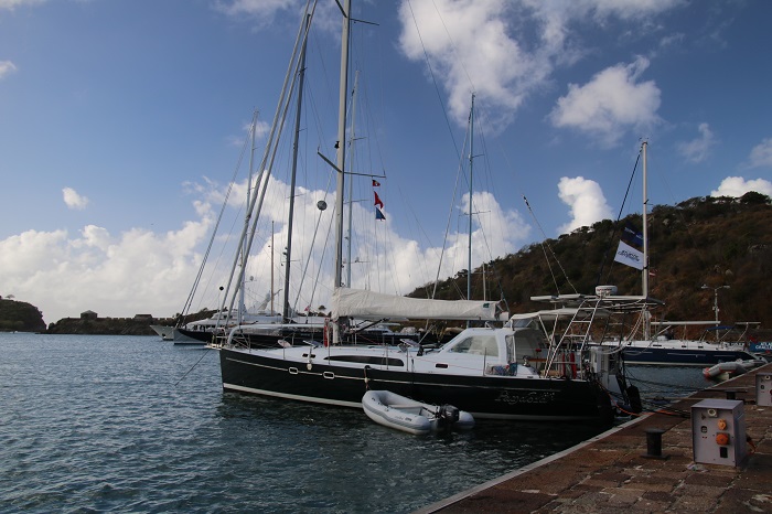 It’s Saturday and we are tied up in Nelson’s Dockyard and still in Antigua. We have some pretty impressive big boat neighbors. Interestingly, when we dropped our anchor to back up to the bulkhead, our anchor snagged the chain on one of the other boats. Great. We will now have the pleasure of hiring a diver to untangle things when we leave. What a racket with divers standing by “just in case”. I’ll bet it’s nearly always the case given the number of snags and anchors running every which way.