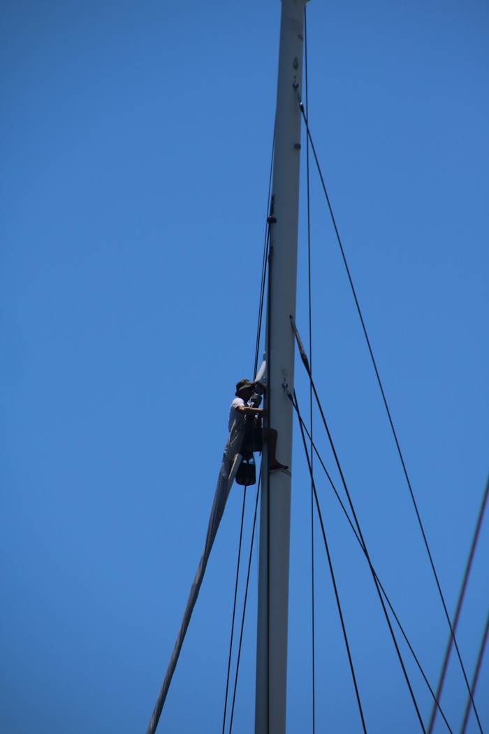 To give you a feel for the scale of these monsters. This closeup of the mast on the left above has someone working aloft.