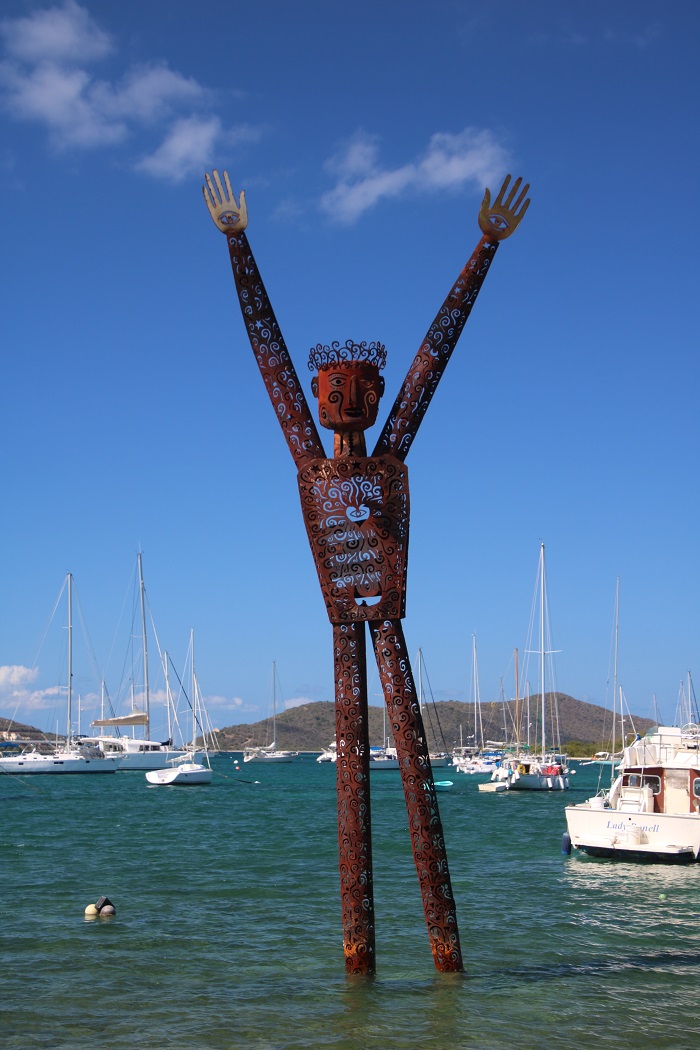 I was even able to save Craig the cost of a cab ride as I took a mooring near the airport.  So near in fact, that it was only a one minute walk to the terminal from the beach.  That’s close.  I’ll bet that this isn’t a normal view of a walkway to the terminal when you head out to catch a flight.  Me neither.Brenda and I had heard about a “full moon party” that was held in Trellis Bay Tortola, the harbor where I dropped Craig at the airport, put on by some artist guy named Aragorn in a spot aptly named “Aragorn’s Studio”.  Aragorn?  I saw the guy and it seemed to me that he looked more like a “Burt”, albeit with an artist flair.   I wonder if he changed his name?  Actually, his real name is Dick. Hmm.  Surely “Dick’s full moon party” doesn’t have the same ring to it.