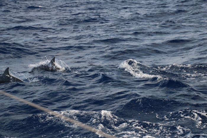 We were visited by pods of dolphins (notoriously difficult to photograph) on a few occasions.  ‘They departed as quickly as they appeared. Of course, each morning we found flying fish on deck and in the cockpit.   I used some of the larger ones as bait but we didn’t catch anything.  However, something caught the bait.  And once, the lure was taken too with the wire leader broken.  I wonder how “big the one that got away” was?  Perhaps I don’t want to know.  I have been cautioned never to use “really large” lures as there is a relationship between the size of the lure and the size of the fish.  In fishing, it seems, that indeed, “size matters”.