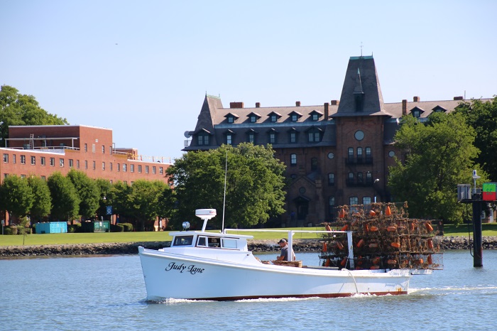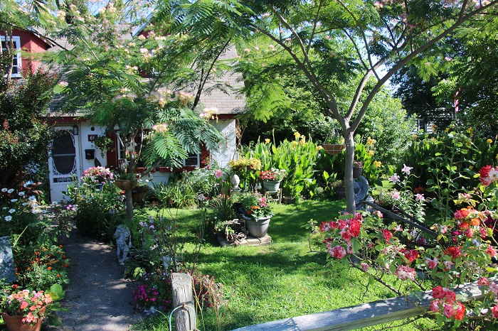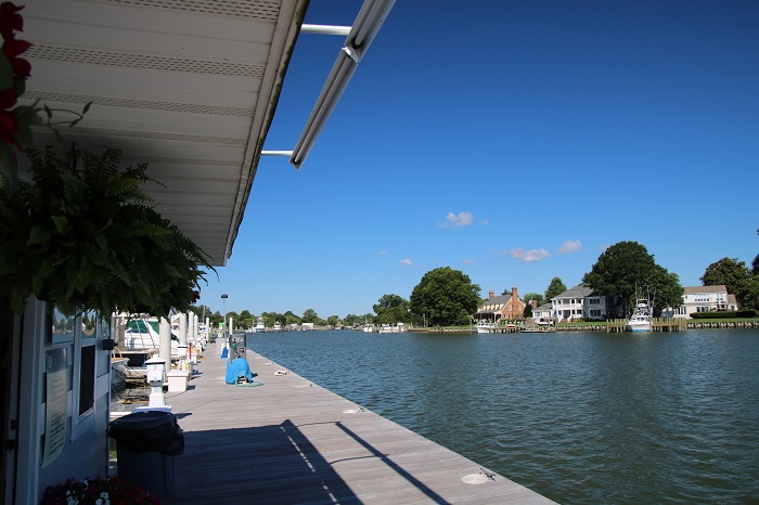 There is a very nice waterfront restaurant and they even have pool.   And, shocker that it is, they actually have terrific WIFI at each slip.  I am on one of the furthest out slips and it comes through full strength.   I say shocker as most marinas boast wifi but it’s terrible.  Good job Dave.  Very nice facility and it’s a short walk to a grocery store. Huge long fuel dock. This morning a lovely crabbing boat.  I think that these are called Chesapeake Deadrise boats.   And Hampton University in the background.Along my walk earlier today I spied this little cottage with great gardens.  Clearly, the owner doesn’t spend much time on the water given the extensive gardens that surely need daily attention. So, here we are spending yet another lovely day in Hampton.  Perhaps we can carve out some time to visit the local brew pub on the waterfront.  Yes, I suppose we will as the marina runs a water taxi over to the the town pier where the pub is located.  Besides, it would almost be sinful not to spread some “green” around town before we depart.  Right?