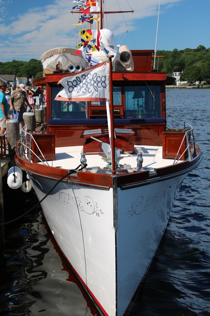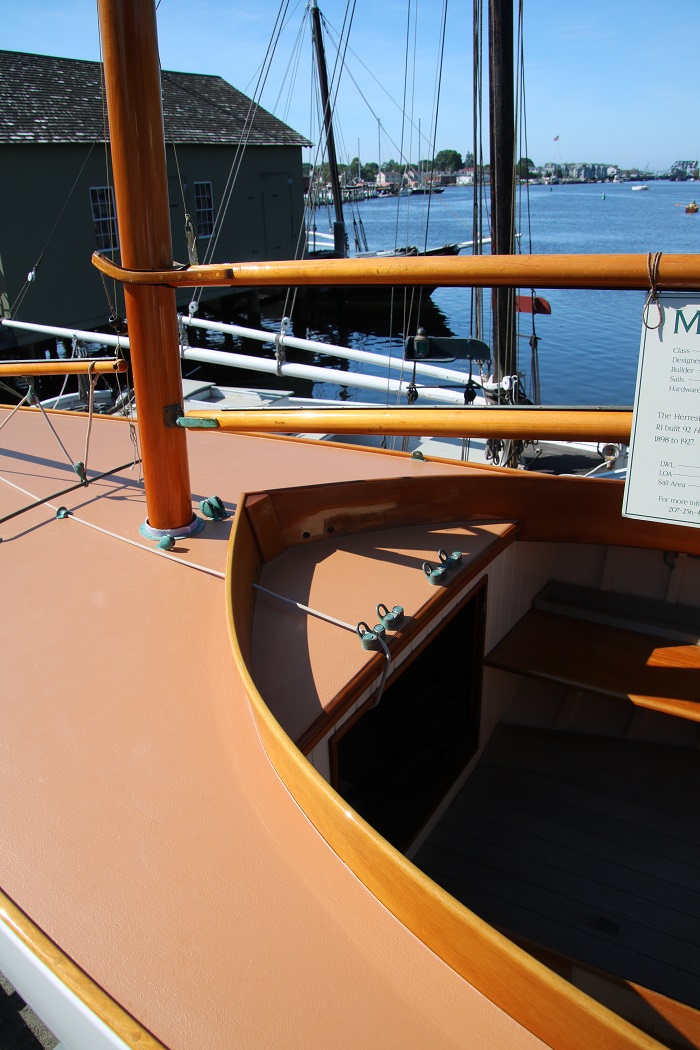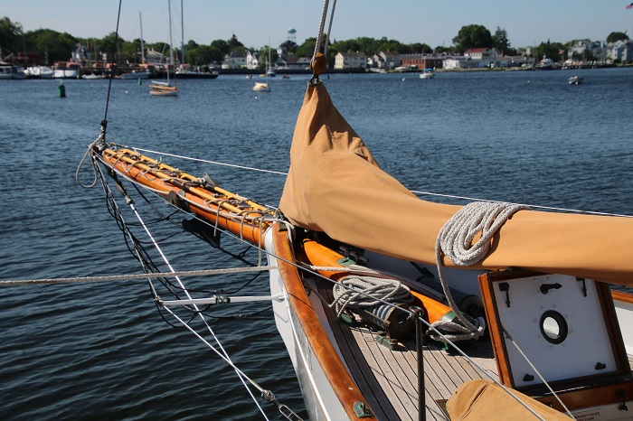 However, unless you have the coin to get someone to do the varnishing for you, you may find yourself spending much of the boating season getting everything just right. Brilliant is wonderfully maintained by the shipwrights at Mystic Seaport.