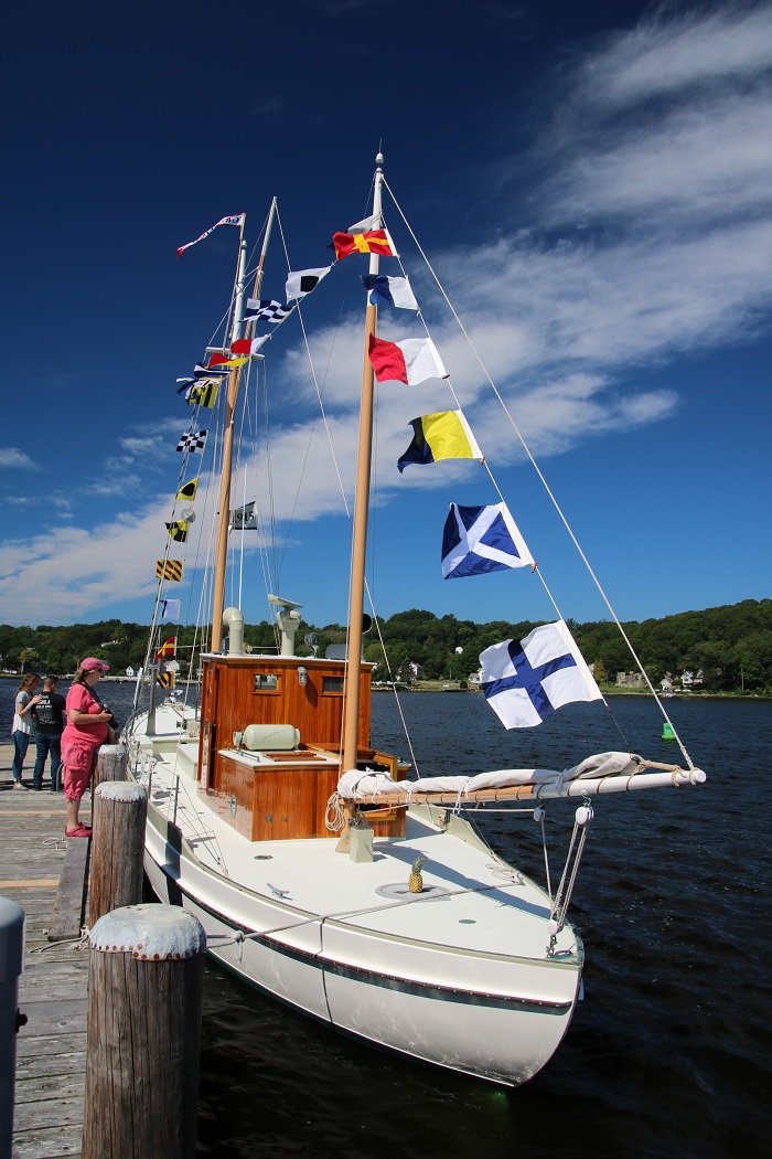 She was a gift to the seaport from Briggs Cunningham, an important figure in the sports car racing in the 1950s. Beyond the race car circuit, he also was a skipper in the America’s Cup in 1958 aboard Columbia and is the inventor of the “cunningham” used for trimming the luff of a mainsail. He loved racing in many forms and spent time aboard Brilliant before donating her to Mystic Seaport in 1953. I understand that he also provided for her future upkeep which The Seaport has done wonderfully for the 65 years that she has sailed under the seaport flag.