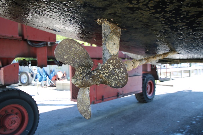 The running gear was covered with barnacles too. No wonder her speed under power was a bit down.