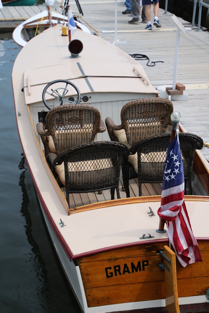 In keeping with my “upper mid life crisis” how about this beauty. Gramp? Love the wicker chairs. I believe that I used a photo of this boat in a post a few weeks ago when I spied her at the Wooden Boat Show. However, I think she’s great so her she/he is again. Love the shift and throttle on the wheel.
