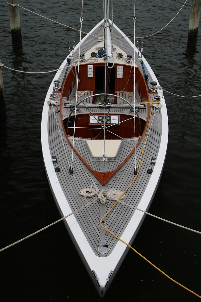 All the boats on display were not classics. This one is a recent design from Sparkman and Stephens. She’s high tech carbon fiber. Quite a magnificent piece of work. I wish I had written down her name.