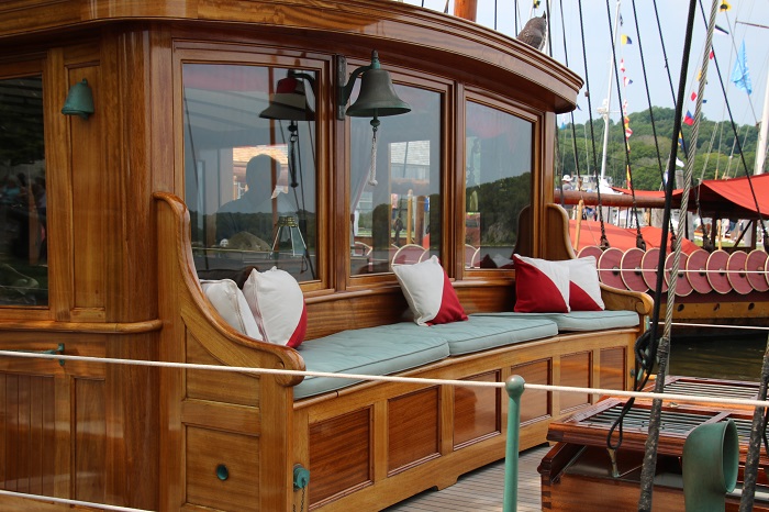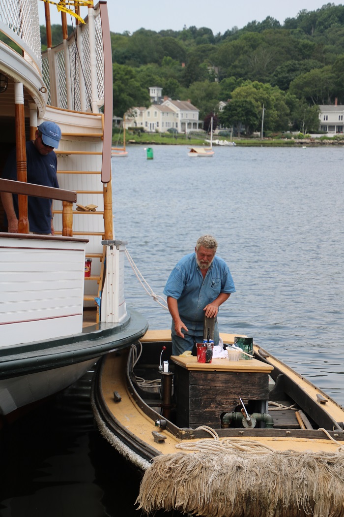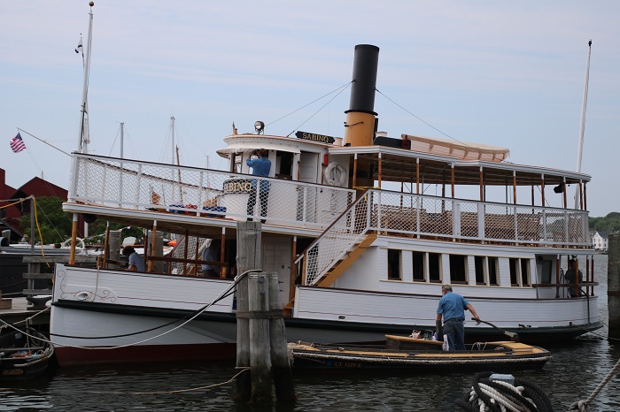 Anyway, I’ll ignore that. As I was saying, we saw some amazing yachts but perhaps the one that I am most smitten with is the Sabino, the lovely little steamboat that makes her home at Mystic Seaport. She’s just been relaunched after a 2.5 year refit and she’s beautiful. As she sat at the dock they were still working on her with the plan of having her ready for visitors in early August.