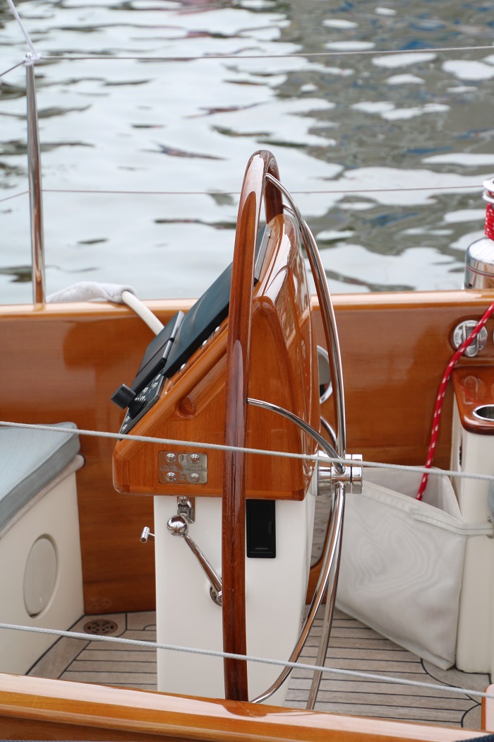 Look at her wheel. It’s designed so you can reach the instruments without going though the spokes of the wheel. I’ll bet that this is only the tip of the iceberg of what makes this boat unique and super pricey.