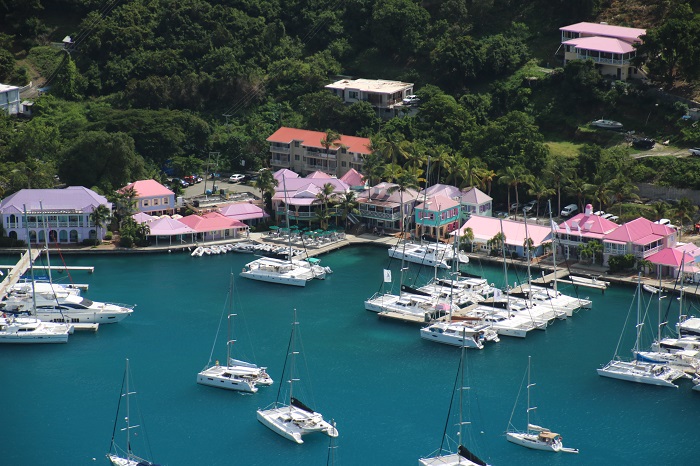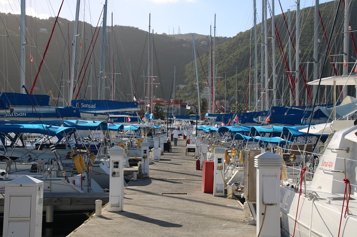 Most sailors that charter in the British Virgin Islands do so out of Road Town, Tortola, home of the areas largest charter fleets managed by The Moorings and Sunsail with literally thousands of boats in their fleet. It was hard to go anywhere in the BVIs without seeing sometimes dozens of boats with their distinctive graphics. This was what a single dock of their boats looked like in their home marina last January when I visited.