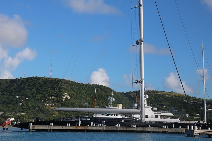 Not a lot of boats were here in the marina when we arrived, but this 220′ sailboat was nearby. Huge. I heard that they had a party catered at one of the local spots and spent plenty including a cool $1,000 on a special cheese platter. The owner of the dining establishment told me that they also drank lots of expensive wine and the bill? Well, let’s just say “if you have to ask, you can’t afford it.” Nope, not Pandora’s crew.